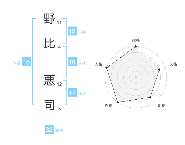 野比 悪司さんの総格は32画の5点!