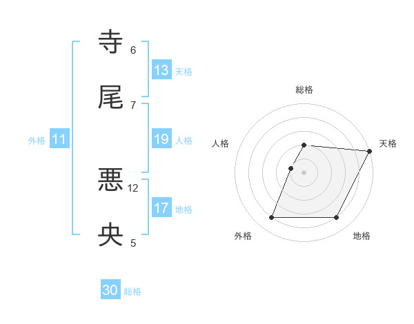 寺尾 悪央さんの天格は13画の5点!