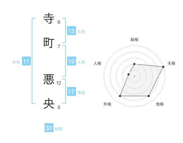 寺町 悪央さんを姓名の画数から五運を鑑定