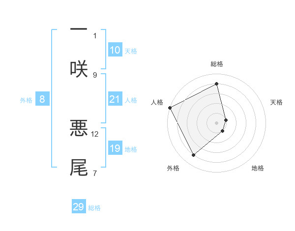 一咲 悪尾さんの総格は29画の4点!