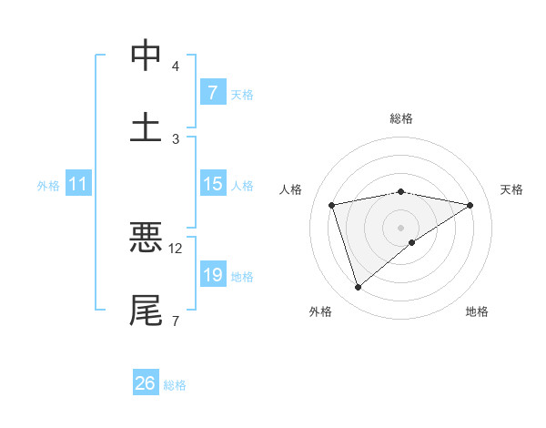 中土 悪尾さんの総格は26画の2点!