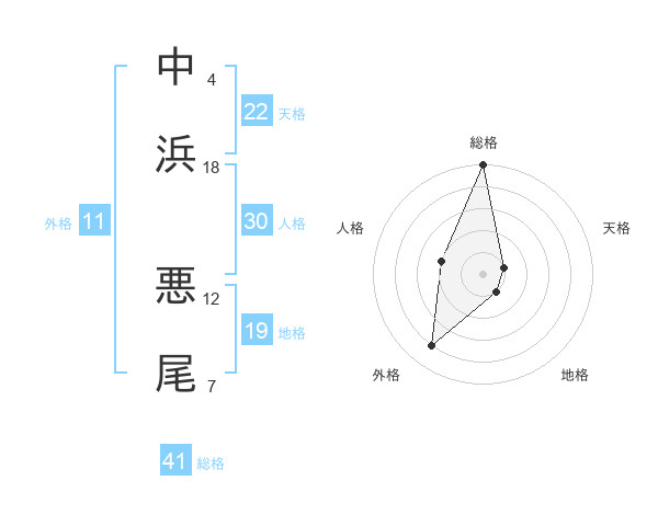 中浜 悪尾さんの総格は41画の5点!