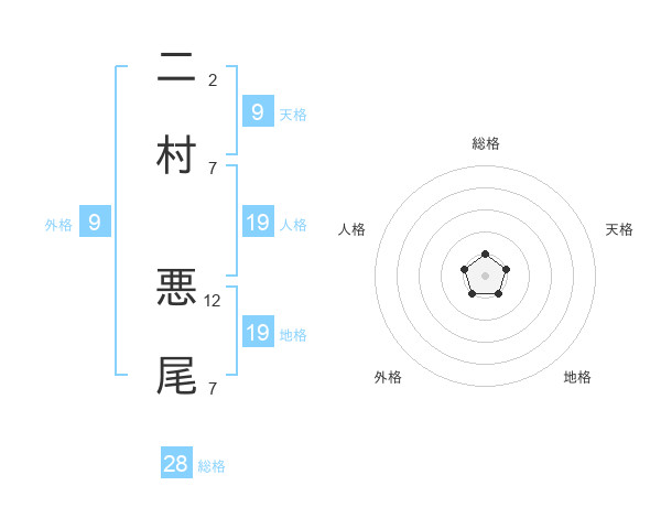 二村 悪尾さんを姓名の画数から五運を鑑定