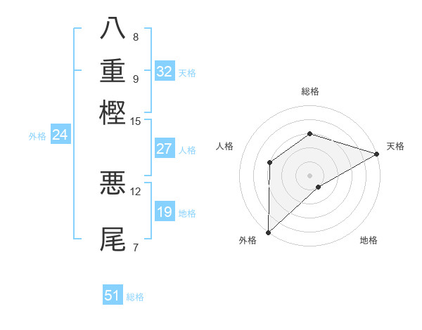 八重樫 悪尾さんを姓名の画数から五運を鑑定