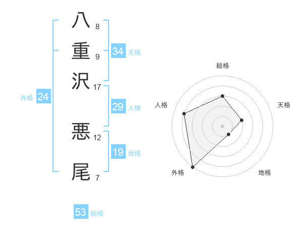 八重沢 悪尾さんを姓名の画数から五運を鑑定