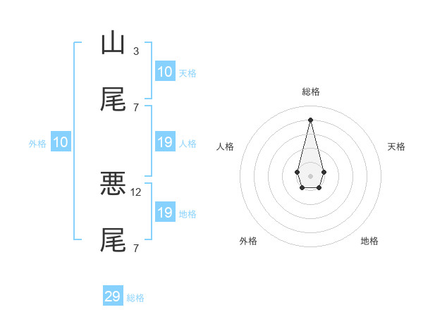 山尾 悪尾さんの総格は29画の4点!
