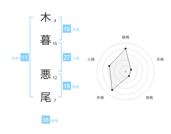 木暮 悪尾さんを姓名の画数から五運を鑑定