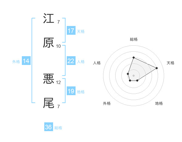 江原 悪尾さんを姓名の画数から五運を鑑定