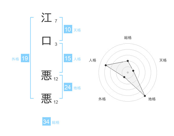 江口 悪悪さんを姓名の画数から五運を鑑定