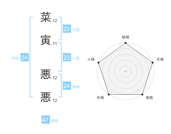 菜寅 悪悪さんの総格は47画の5点!