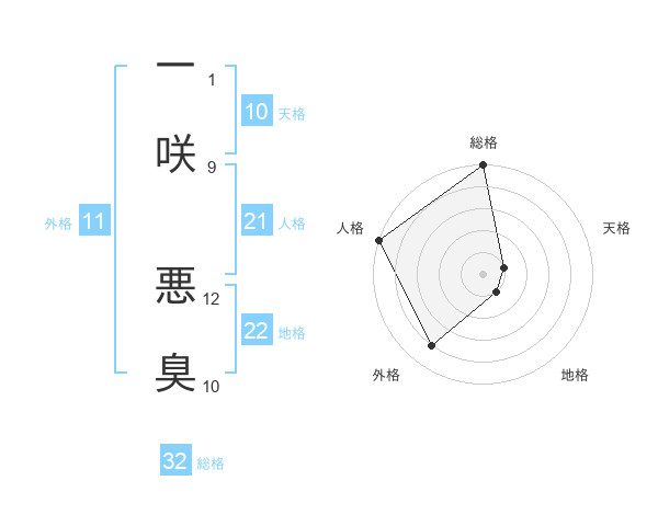 一咲 悪臭さんの総格は32画の5点!