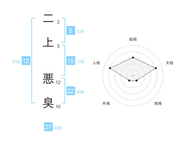 二上 悪臭さんを姓名の画数から五運を鑑定