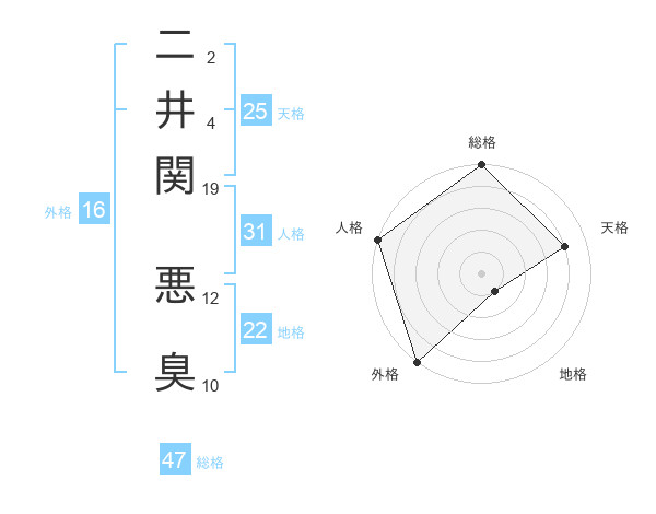 二井関 悪臭さんの総格は47画の5点!