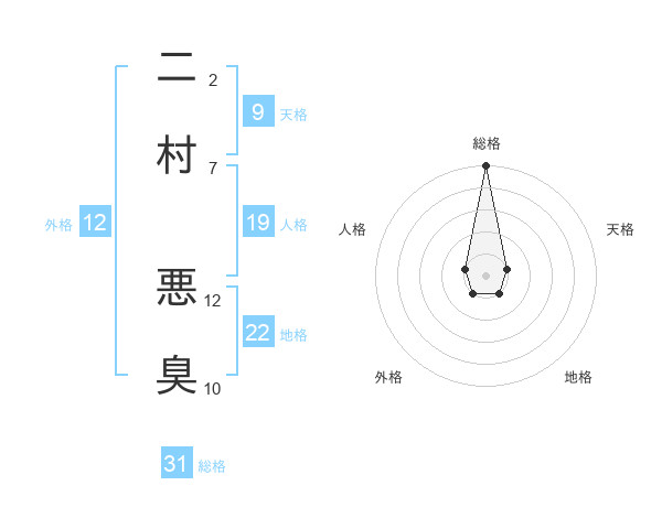 二村 悪臭さんを姓名の画数から五運を鑑定