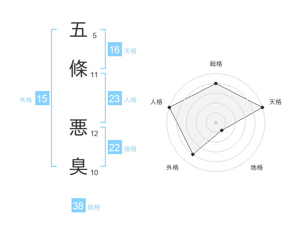 五條 悪臭さんの外格は15画の4点!