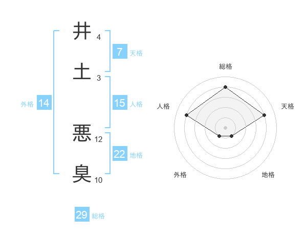 井土 悪臭さんの総格は29画の4点!