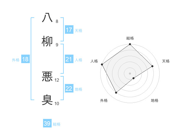 八柳 悪臭さんの地格は22画の1点!