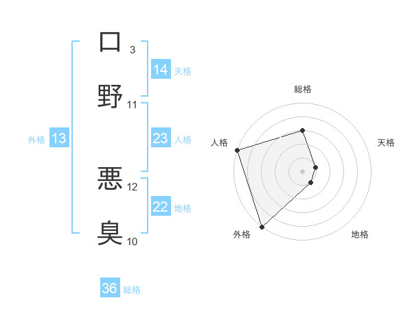 口野 悪臭さんを姓名の画数から五運を鑑定
