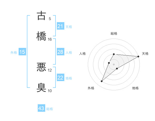古橋 悪臭さんの天格は21画の5点!