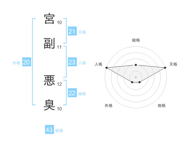 宮副 悪臭さんの総格は43画の2点!
