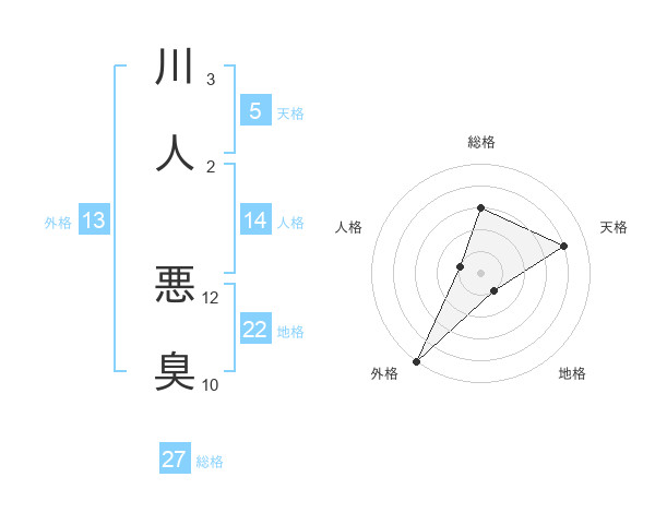 川人 悪臭さんの外格は13画の5点!