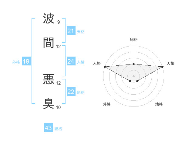 波間 悪臭さんを姓名の画数から五運を鑑定