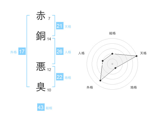 赤銅 悪臭さんを姓名の画数から五運を鑑定