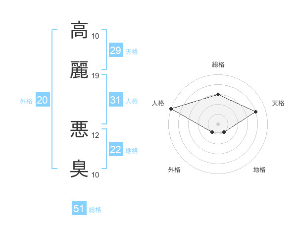 高麗 悪臭さんの総格は51画の3点!