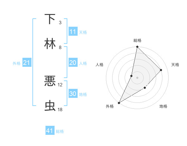 下林 悪虫さんを姓名の画数から五運を鑑定