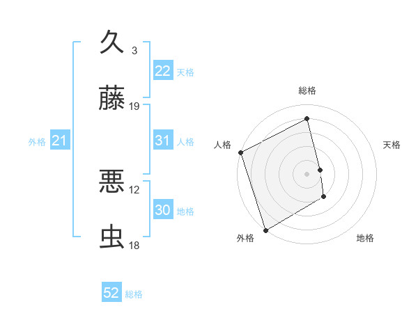 久藤 悪虫さんの総格は52画の4点!
