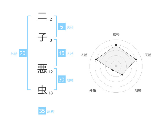 二子 悪虫さんを姓名の画数から五運を鑑定