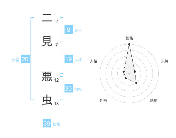 二見 悪虫さんを姓名の画数から五運を鑑定