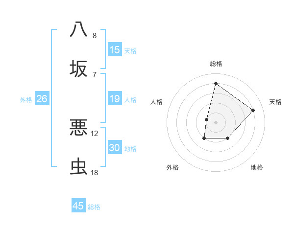 八坂 悪虫さんの総格は45画の4点!
