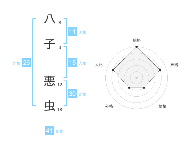 八子 悪虫さんの総格は41画の5点!