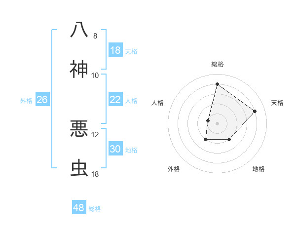 八神 悪虫さんの総格は48画の4点!