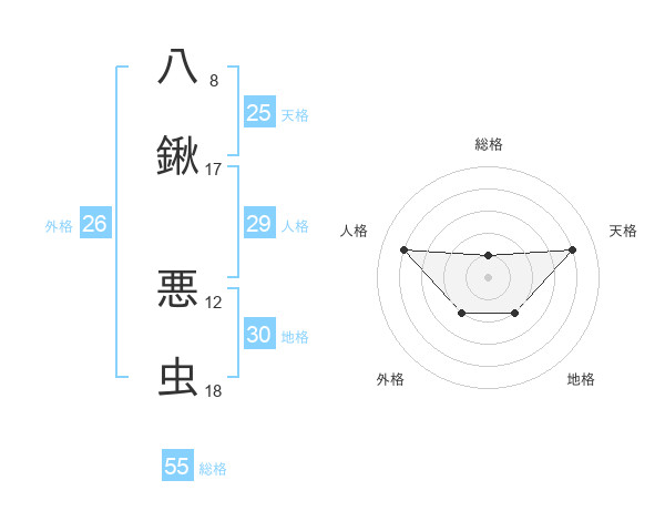 八鍬 悪虫さんの総格は55画の1点!