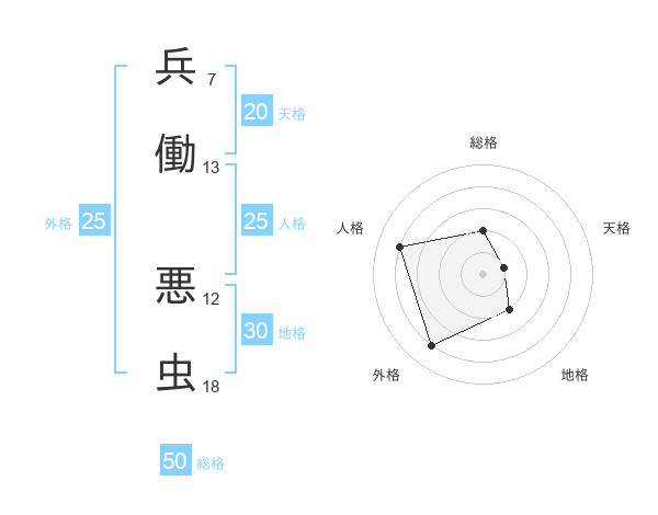 兵働 悪虫さんを姓名の画数から五運を鑑定