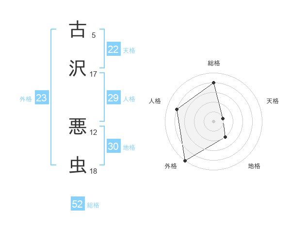 古沢 悪虫さんを姓名の画数から五運を鑑定