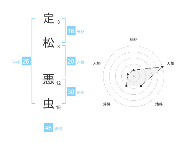 定松 悪虫さんの総格は46画の1点!