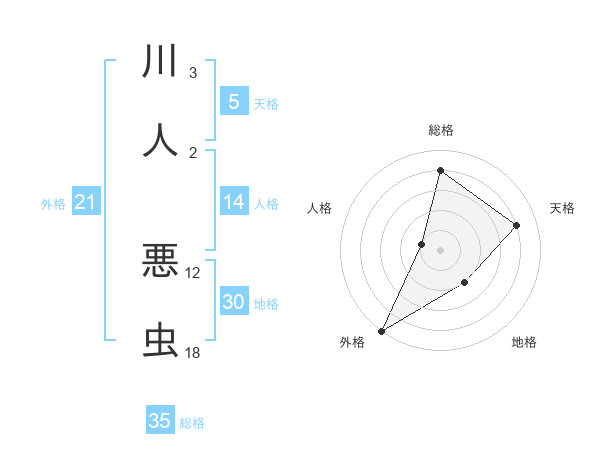 川人 悪虫さんの総格は35画の4点!