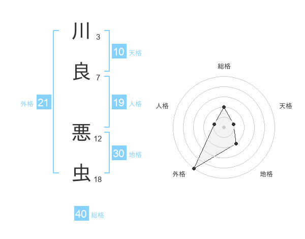 川良 悪虫さんを姓名の画数から五運を鑑定