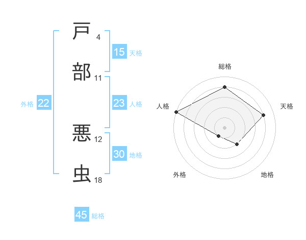 戸部 悪虫さんを姓名の画数から五運を鑑定