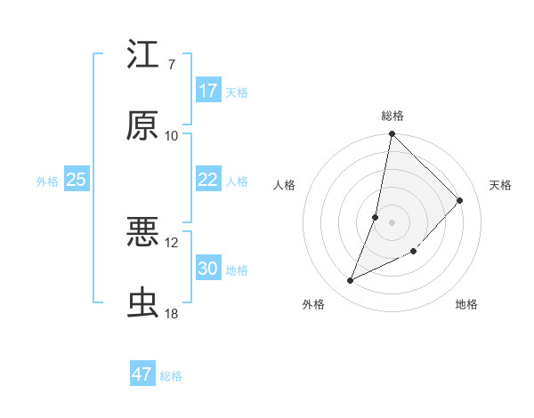 江原 悪虫さんを姓名の画数から五運を鑑定