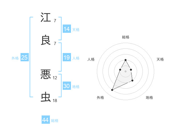 江良 悪虫さんの総格は44画の2点!