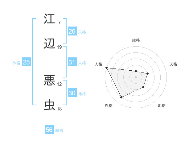 江辺 悪虫さんの総格は56画の1点!