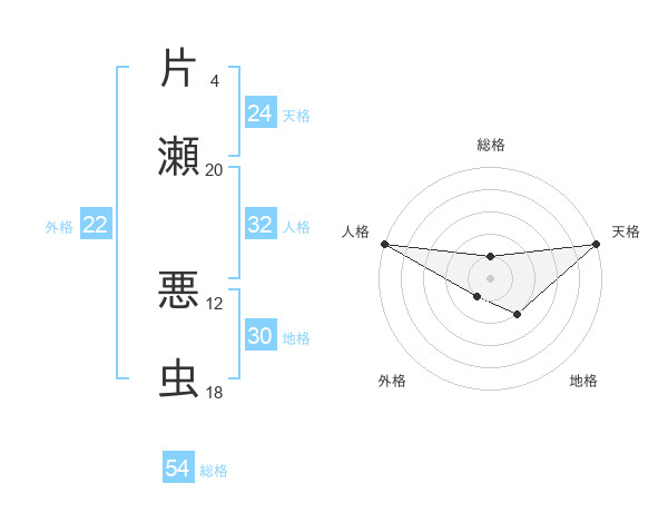 片瀬 悪虫さんを姓名の画数から五運を鑑定