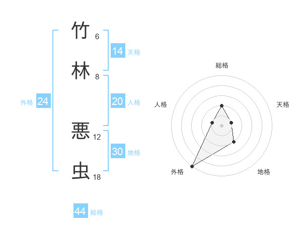 竹林 悪虫さんの総格は44画の2点!