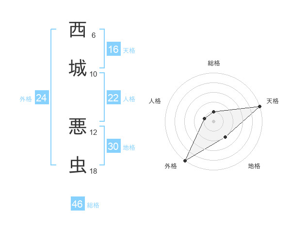 西城 悪虫さんを姓名の画数から五運を鑑定