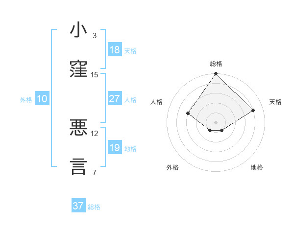 小窪 悪言さんを姓名の画数から五運を鑑定