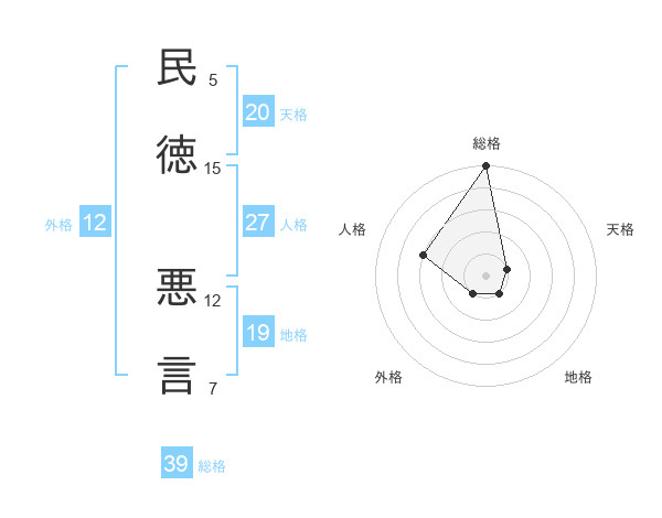 民徳 悪言さんを姓名の画数から五運を鑑定